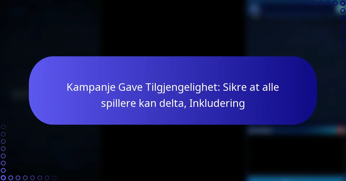 Å sikre tilgjengelighet i kampanjegaver er avgjørende for å fremme inkludering blant alle spillere, uavhengig av deres evner. Ved å utforme initiativer som tar hensyn til fysiske, kognitive og sensoriske utfordringer, kan vi skape et miljø der alle kan delta fullt ut og nyte opplevelsen. Å prioritere mangfoldige behov i gaveutvalget forbedrer ikke bare engasjementet, men dyrker også en følelse av tilhørighet i fellesskapet.